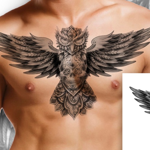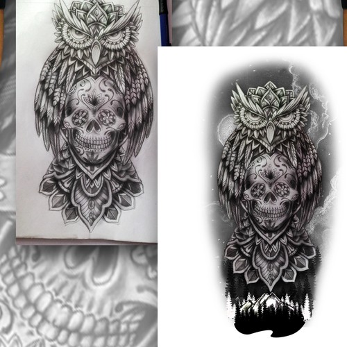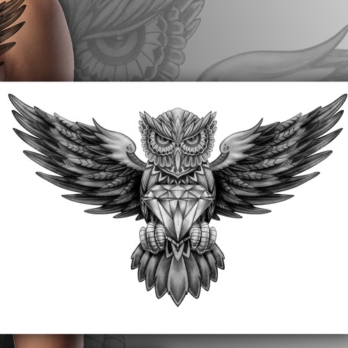 Traditional american style/comic tattoo forearm (black & grey) - dark owl... | Tattoo contest | 99designs